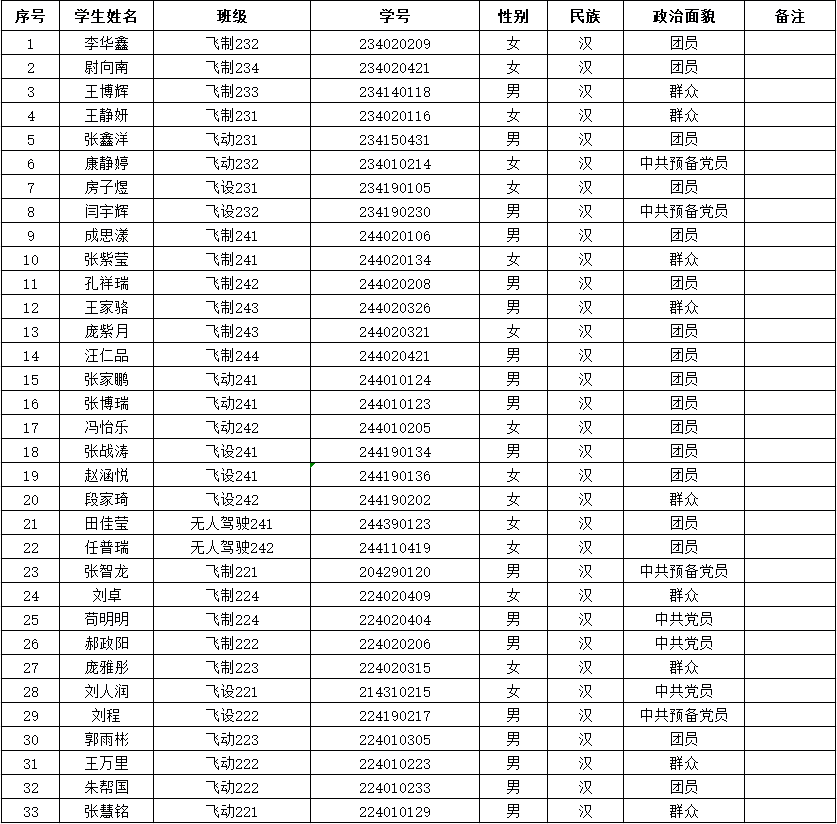 飞行器学院(低空技术与工程学院)2024-2025学年国家励志奖学金获奖学生初审名单