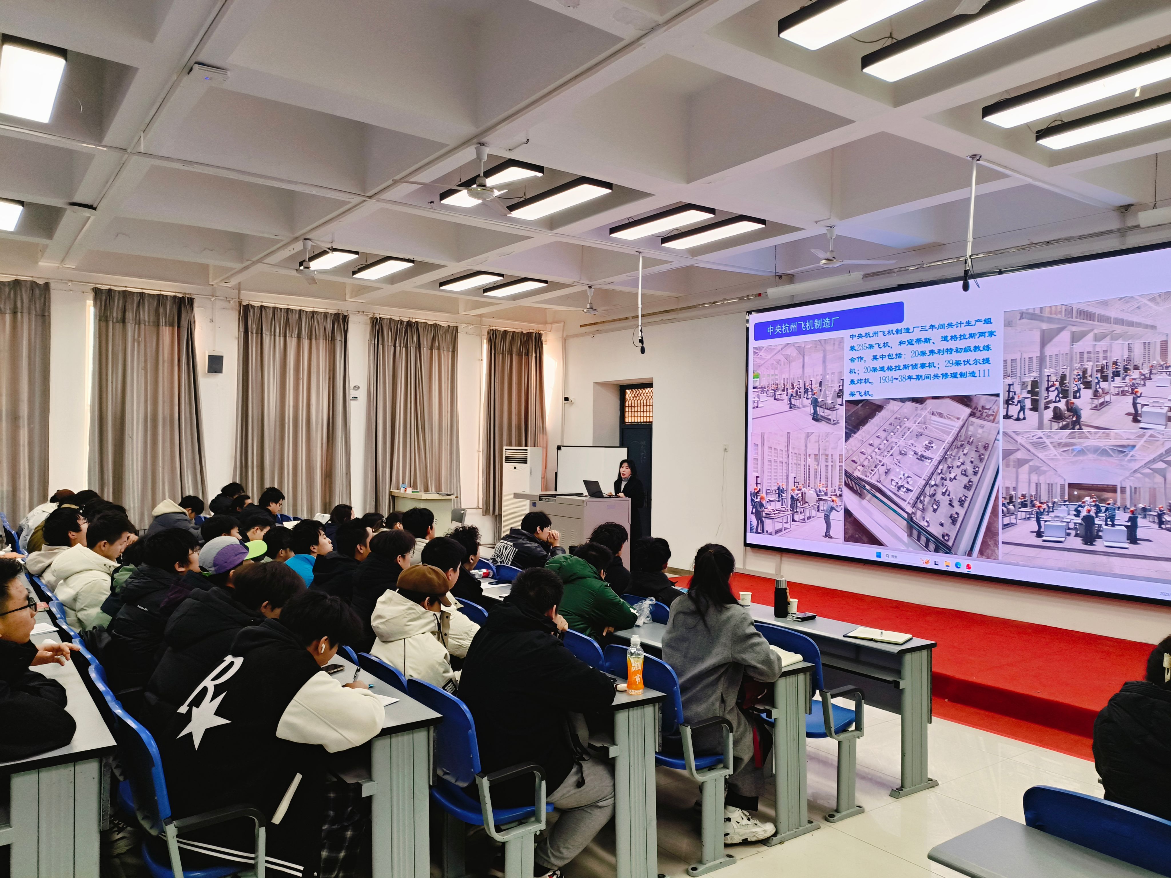 讲座中,王波老师以深厚的历史视角和生动的史实叙述,系统梳理了我国航空事业从萌芽探索、战火淬炼,到自力更生、创新超越的奋斗历程。通过翔实的案例与珍贵的历史影像,师生们仿佛穿越时空,亲历了从“航空救国”到“航空强国”的伟大跨越,深切感受到几代航空人矢志不渝的报国情怀、艰苦奋斗的拼搏精神与自主创新的坚定决心。